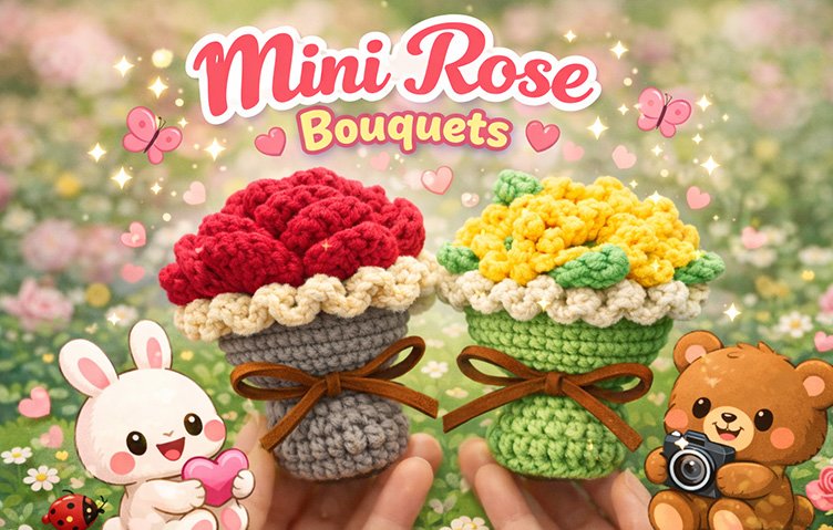 🌼 Bouquet Body (Main Part) Round 1 6 sc in magic ring (6 sts)👉 Crochet 6 single crochets into a