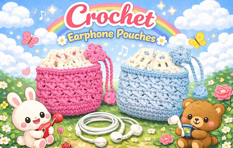 👜 Pouch Body Round 1 Ch 12.Skip 2 ch from hook, work:10 sc, 1 dc, 9 sc 👉 This creates […]