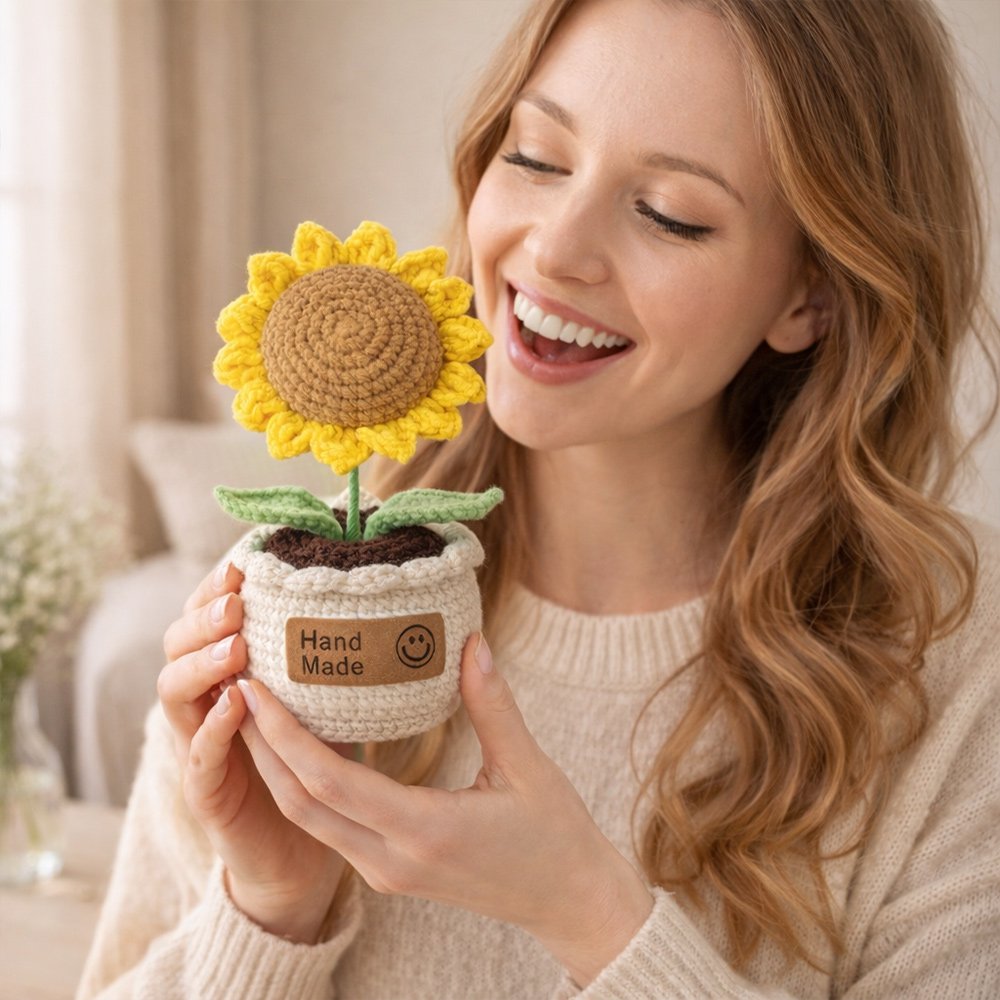 Hand-Crocheted Sunflower Planter